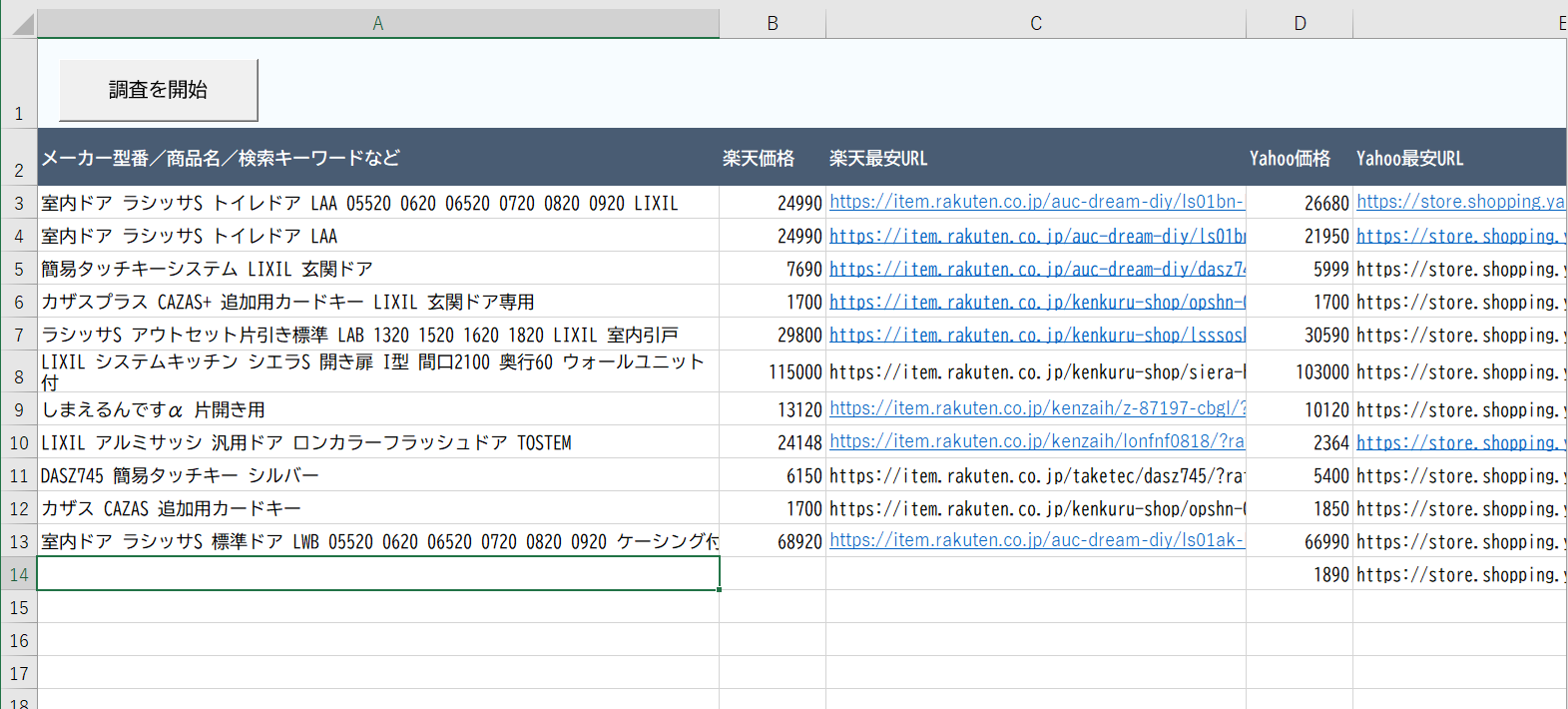 楽天市場およびYahoo!ショッピングの毎日の価格調査ツールを開発いたしました。